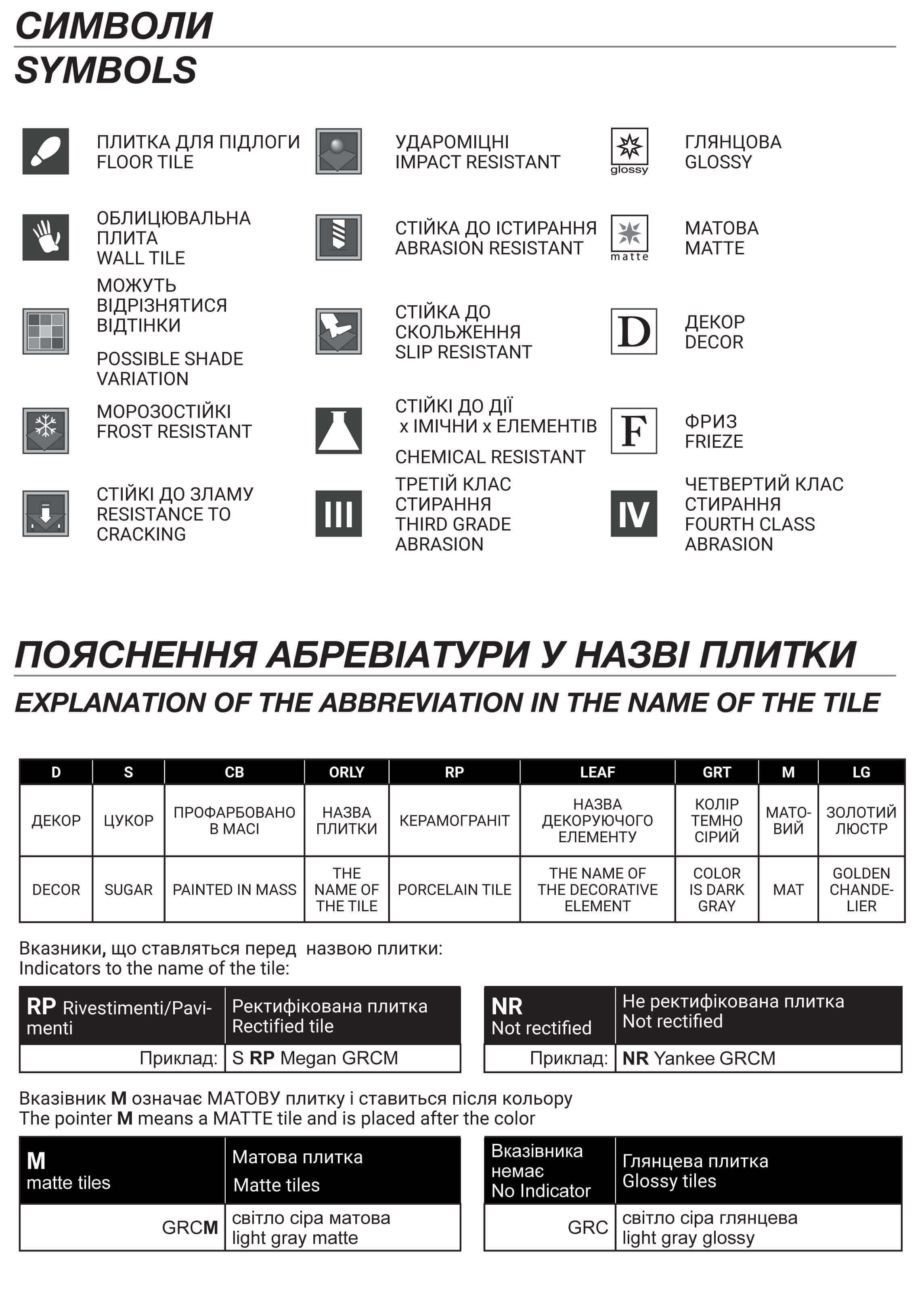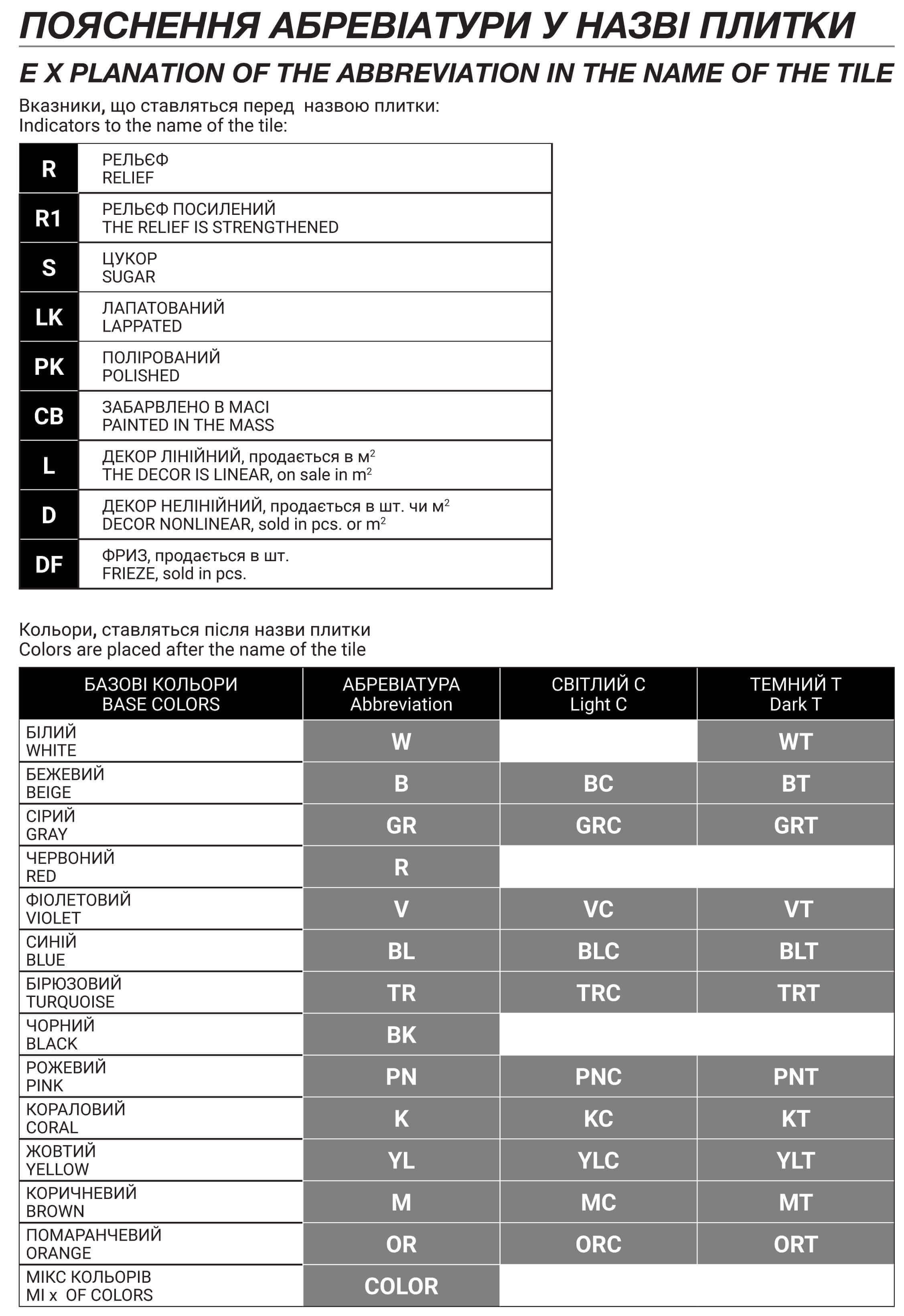 ПОЯСНЕНИЕ АБРЕВИАТУРЫ В НАЗВАНИИ ПЛИТКИ